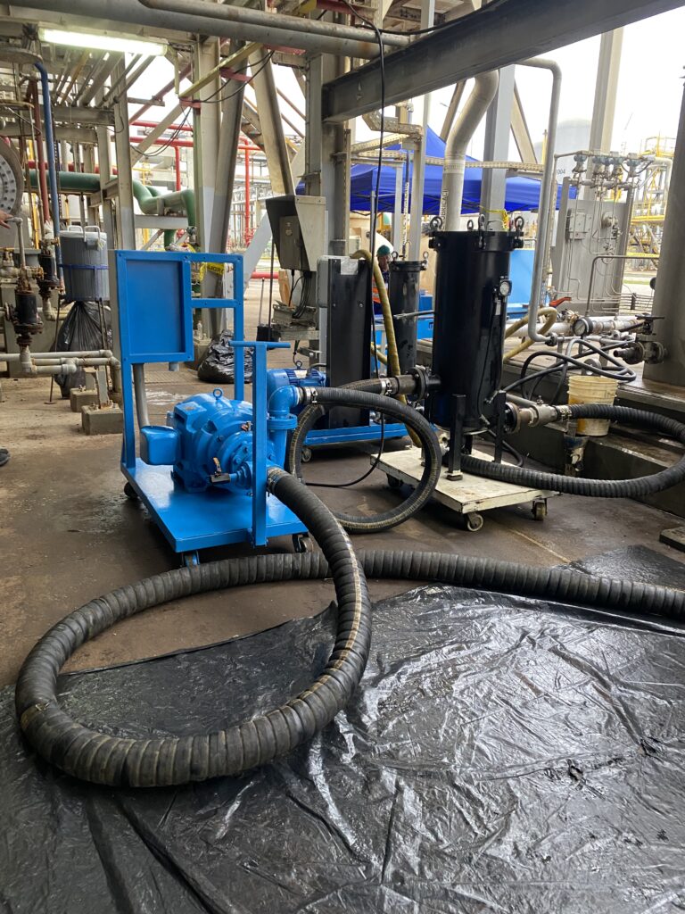 Our High Velocity Oil Flushing service is a comprehensive solution managed by professional project managers with extensive expertise in steam and combustion turbines, compressors, engines, and hydraulic systems. Our portable and modular flushing skids are equipped for both High Pressure/Low Flow and Low Pressure/High Flow applications, allowing us to customize flushing packages to rapidly meet your specific